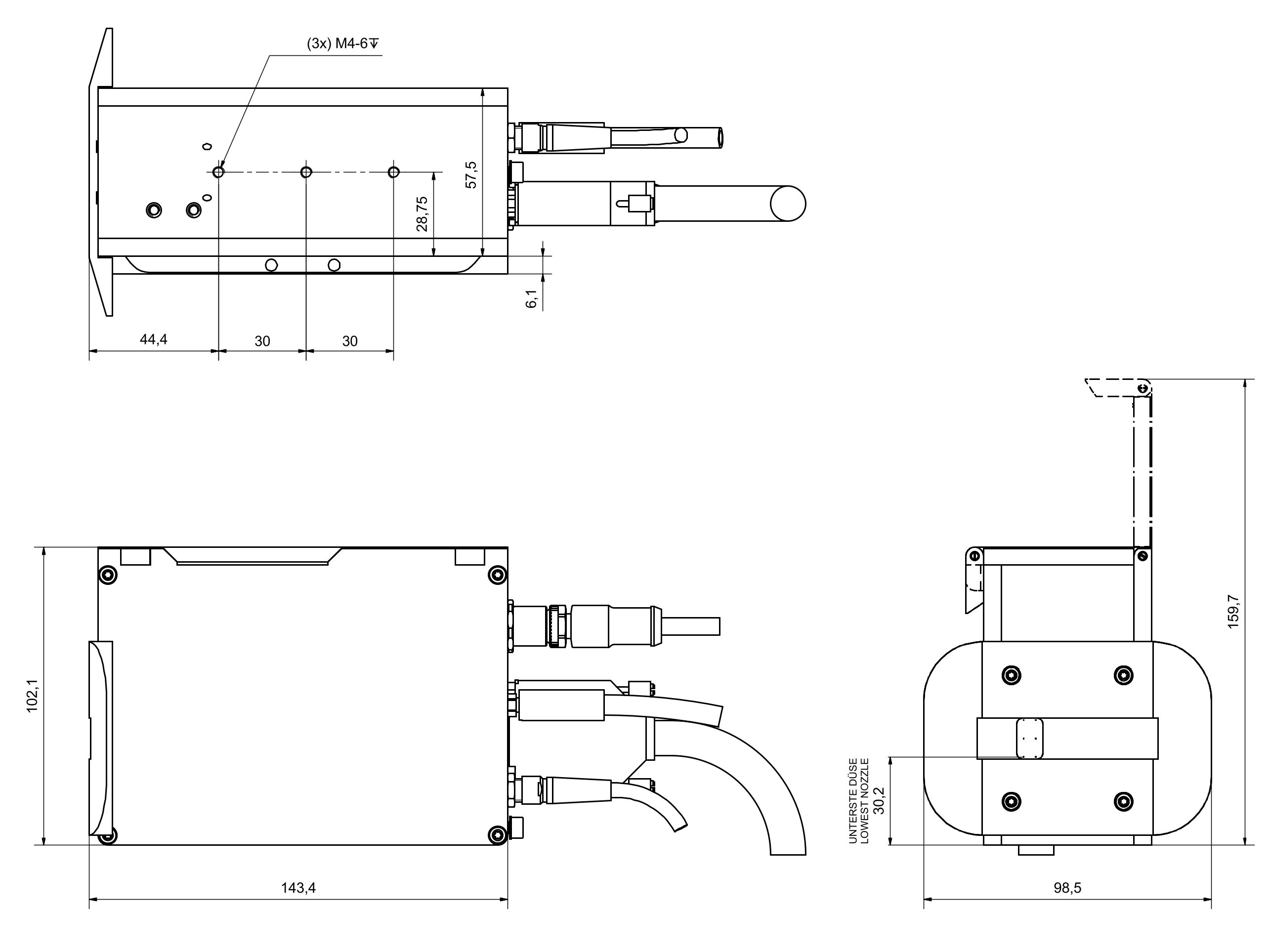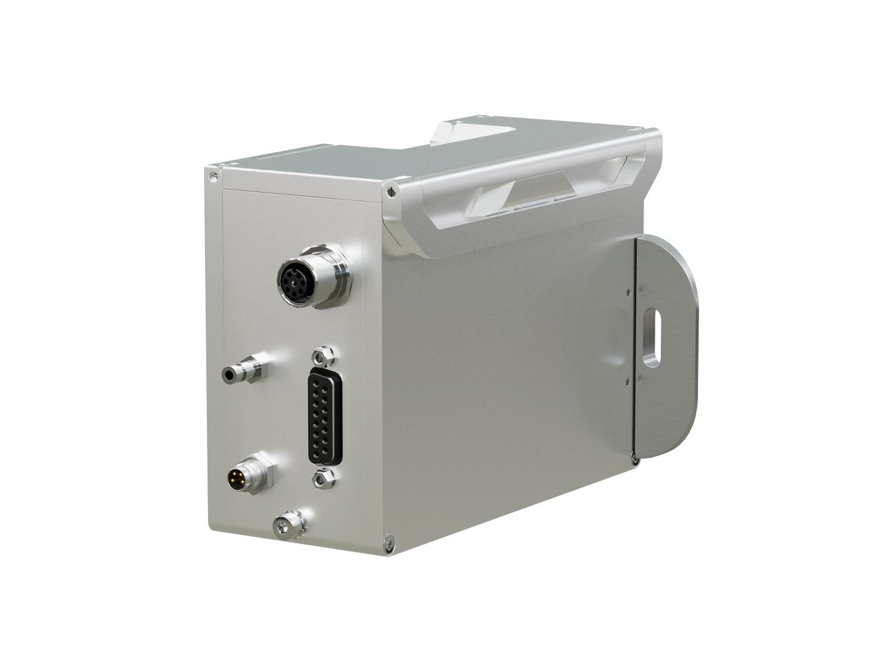 Dank der hohen Schutzart IP65 ist der Inkjet-Drucker vollständig staubdicht und zuverlässig gegen Strahlwasser geschützt. Ein geschlossener Deckel in Kombination mit einem speziellen Überdruckanschluss stellt sicher, dass weder Feuchtigkeit noch Staubpartikel ins Geräteinnere gelangen können. Der Stromanschluss erfolgt über ein robustes Netzteil mit wasserdichtem M8-Steckverbinder, während die externen Schnittstellen mit IP67-Steckverbindern für maximale Sicherheit ausgestattet sind.