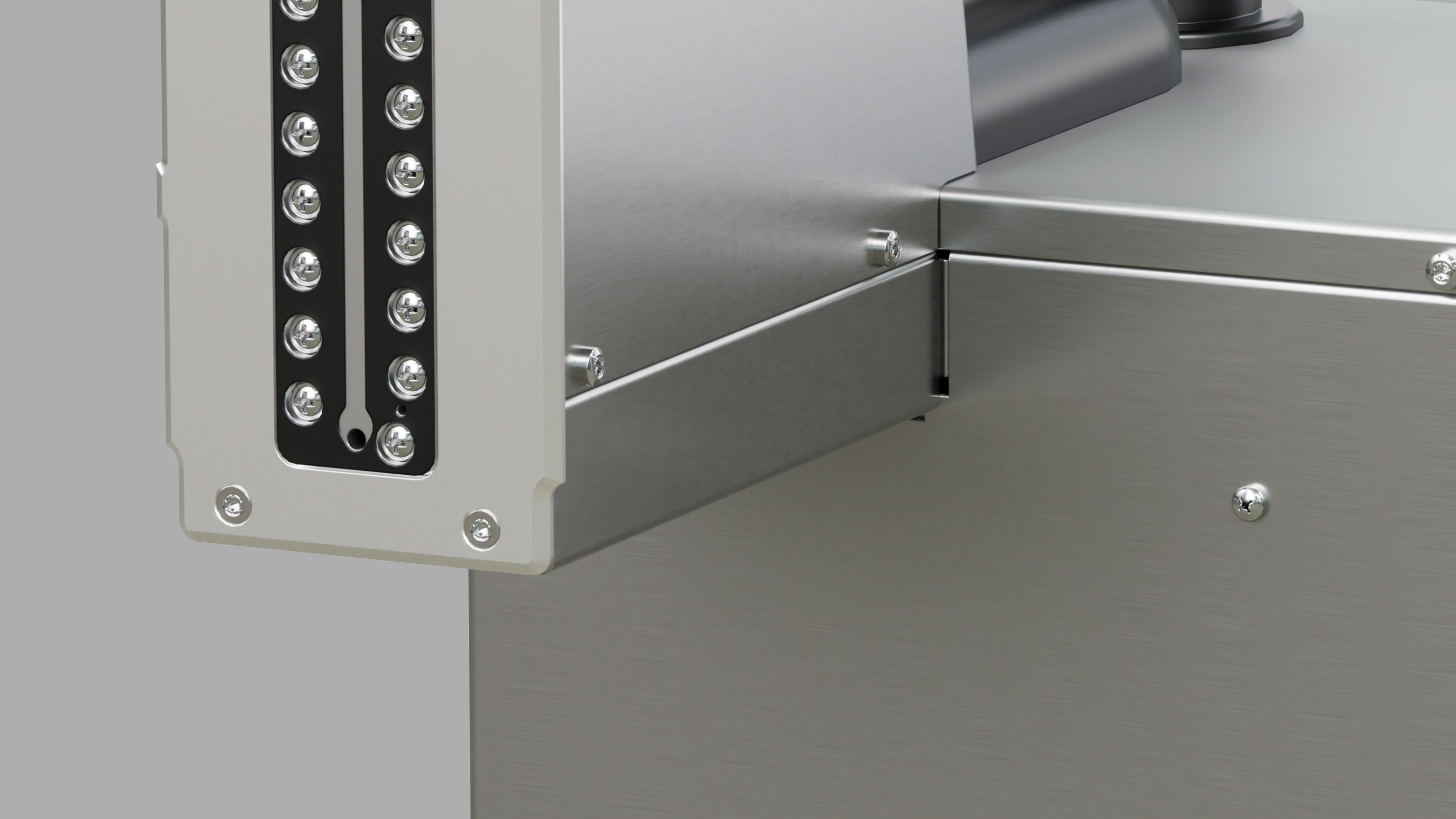 Die „All in One“-Bauweise vereint Druckkopf, Tintensystem, Reinigungsstation, Ansteuerelektronik und Netzteil in einem kompakten Gehäuse und macht die Handhabung dadurch besonders komfortabel. Diese durchdachte Konstruktion erleichtert nicht nur die Inbetriebnahme des Systems, sondern auch die Entlüftung des Tintenkreislaufs. Zudem reduziert sie den Wartungsaufwand erheblich und sorgt für eine lange Lebensdauer sowie eine sichere und zuverlässige Funktionsweise.